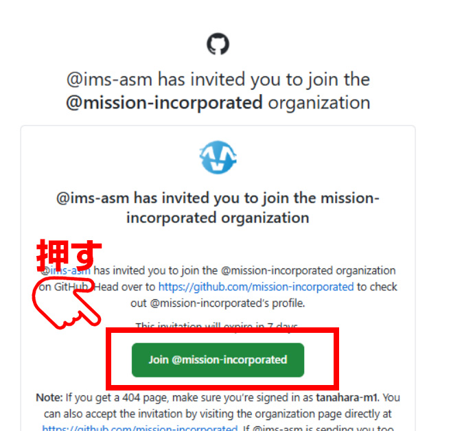 「Join @mission-incorporated」のボタンを押して参加してください!