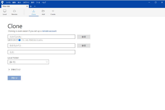 ※初期設定では、SourceTreeが起動している状態であることを前提としています。まだ起動していない場合は起動してください。