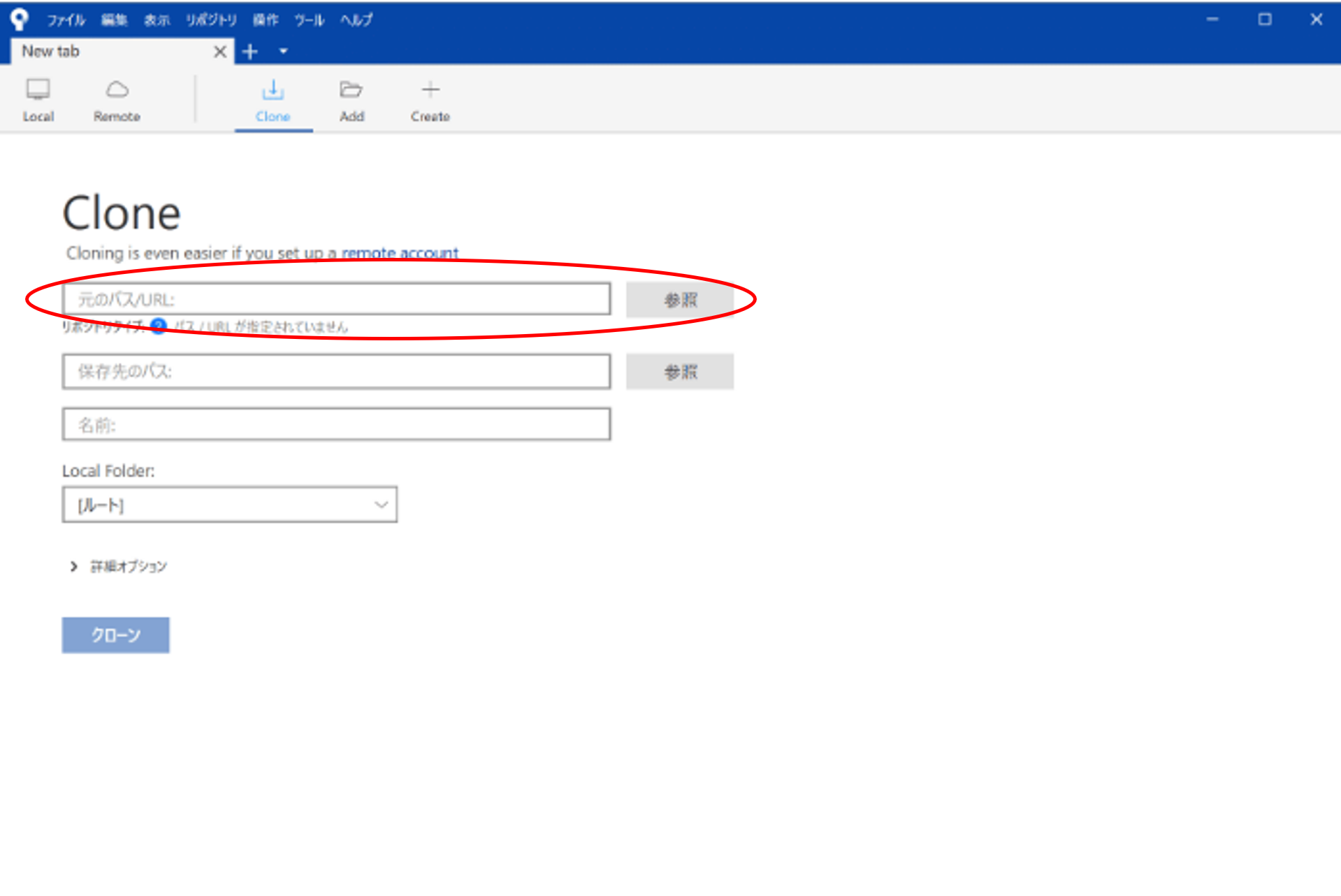 SourceTreeに戻って、先ほどコピーしたURLを「元のパス/URL」に貼り付けます。 これで4_2は完了です。このように項目を埋めていきましょう!