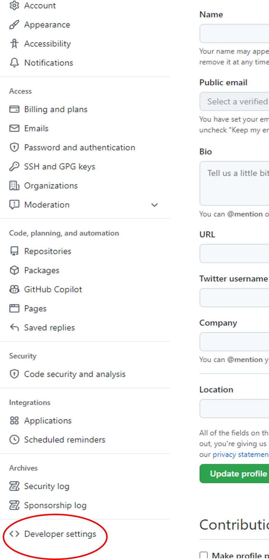 setting内、左サイドメニューの一番下[Developer setting]を開きます。