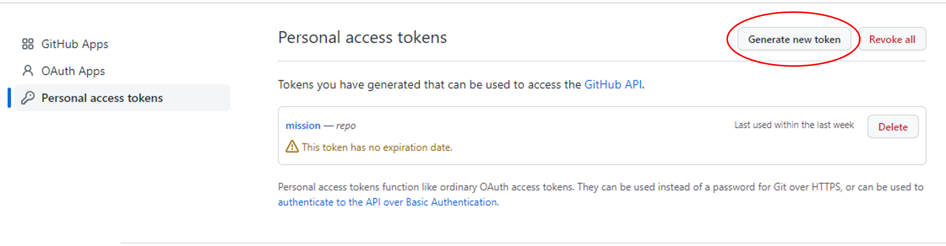 万が一トークンをメモせず、再表示できなくなった場合は作成したmissionトークンをDeleteしてから、STEP4-4に戻り同じ入力条件で再発行を行ってください!