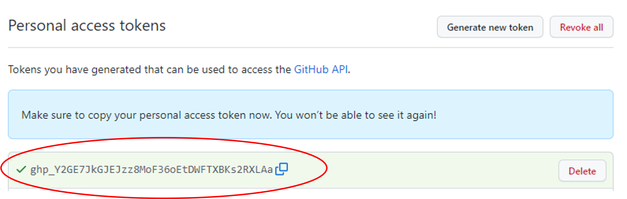※画面をリダイレクト、戻るボタンを押すなどして画面を離れると二度とトークンは再表示されません。 必ずメモに転記するようにしてください。