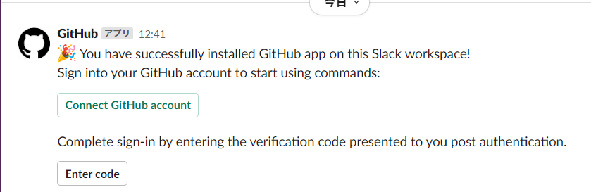 Slack上のAppにGithubが追加され、メッセージが届きます。