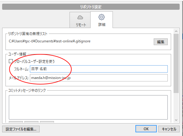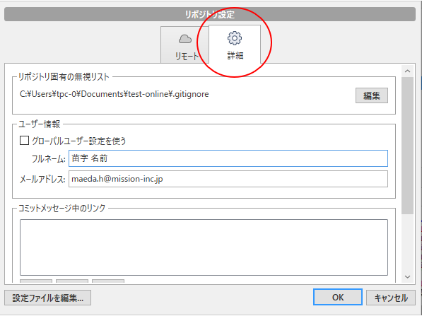 SourceTreeの表示名を「苗字 名前」(苗字と名前の間は半角スペース)に統一します。