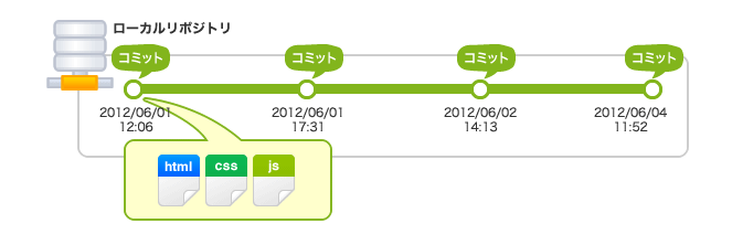 | リポジトリ(repository) | 貯蔵庫。ファイルやディレクトリの状態を記録する場所。 |