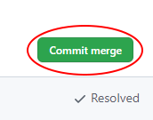 コンフリクトが1つだけの場合、[Commit merge]のボタンが出現するので、クリックしてください。